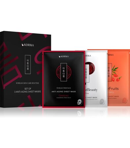 KORIKA KOREAN SKIN CARE ROUTINE SET OF 3 ANTI-AGING SHEET MASKS setti ryppyjen ehkäisyyn
