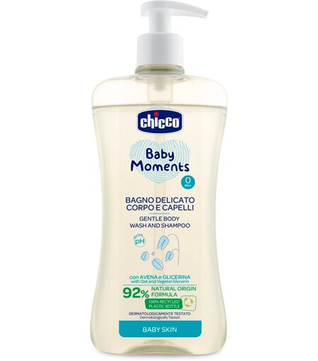Chicco Baby Moments hellävarainen lasten shampoo hiuksiin ja vartalolle 500 ml