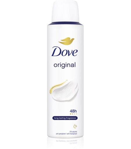 Dove Original, 150 ml, Deodorantit ja Antiperspirantit Naisille, Olipa päiväohjelmasi millainen tahansa, voit unohtaa huolet hien hajusta. Deodorantti Dove Original estää hien hajun aiheuttamat ikävät tilanteet. Tuote jättää ihollesi hyvän tuoksun ja ehkäisee hajua, joka syntyy hien ja bakteerien reaktiosta iholla. Tehokas deodoranttivaikutus takaa pitkäkestoisen suojan, joten voit nauttia raikkaasta ja puhtaasta olosta koko päivän ajan. Ominaisuudet: suojaa tehokkaasti hikoilulta suojaa epämiellyttävältä hajulta antaa pitkäkestoisen hyvän olon ja puhtauden tunteen raikastaa antaa pitkäkestoisen suojan Käyttöohjeet: Levitä kainaloihin puhtaalle ja kuivalle iholle. Anna kuivua täysin ennen pukeutumista. Toista milloin tahansa päivän aikana. ...