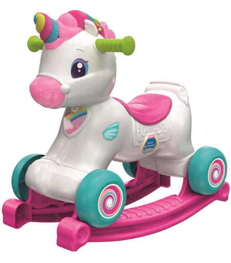 Upea keinuvaa yksisarvista, joka on myös lelu, jolla lapset voivat levittää siipensä ja lentää! Anturilla varustettu yksisarvinen tunnistaa liikkeen ja kiehtoo lasta realistisilla äänillä, suloisilla sanoilla ja hauskoilla lauluilla. Jos lapsi silittää yksisarvisen nenää, tähti syttyy ja yksisarvinen on vuorovaikutuksessa lapsen kanssa saadakseen hänet huolehtimaan yksisarvisesta. Harjan napit opettavat lapsille kirjaimia sekä eläinten nimiä ja niiden tuottamia ääniä, samalla kun he voivat tutkia yksinkertaisia numeroita. Täynnä lauluja ja hauskoja lastenloruja. Se stimuloi motorisia ja kielitaitoja sekä emotionaalista kehitystä. ...