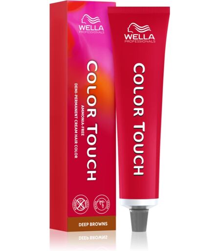 Wella Professionals Color Touch Deep Browns, 60 ml, Pysyvä Hiusväri Naisille, Haluatko vaihtaa hiustesi väriä pysyvästi, peittää harmaat tai lisätä nykyisen värisi kiiltoa? Wella Professionals Color Touch Deep Browns -kestohiusvärillä saat unelmiesi hiukset. Se antaa hiuksillesi voimakkaan värisävyn ja kiillon, joka ei himmene tai peseydy pois kevytvärin tai sävyttävän shampoon tavoin, vaan pysyy upeana viikkokausien ajan. Pigmentit kiinnittyvät syvälle hiuskuituun, joka takaa pitkäkestoisen lopputuloksen ja erinomaisen peittävyyden muun muassa harmaille hiuksille. Halusitpa siis tasapainottaa luonnollista hiusväriäsi tai vaihtaa sen aivan toiseksi, tämä kestohiusväri ei tuota pettymystä. Ominaisuudet: värjää hiukset luotettavasti saa kiillottomat hiukset kiiltämään korostaa väripigmenttiä Ainesosat: ammoniakiton Käyttöohjeet: Ammattilaiskäyttöön tarkoitettu hiusväri käytettäväksi ainoastaan kampaamoissa. Lopullinen värisävy riippuu hiusten tyypistä ja kunnosta. ...