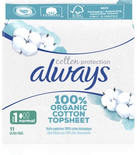 Always Cotton Protection Normal, 11 kpl, Terveyssiteet Naisille, Maksimaallinen mukavuus ja 100-prosenttinen suoja kuukautiskierron aikana. Terveyssiteet Always Cotton Protection Normal varmistavat mukavan ja varman tunteen vuotopäiviesi aikana. Ominaisuudet: dermatologisesti testattu miellyttävä ja pehmeä materiaali imukykyinen sisus, joka imee ja lukitsee nesteen sisäänsä siivet suojaavat alusvaatteiden reunoja koko on ihanteellinen heikon vuodon päiviin Ainesosat: 100 % puuvillaa ekologinen tuote ei kloorivalkaistu ...
