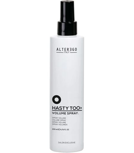 ALTER EGO Hasty Too Volume Spray 200ml on volyymisuihke, joka luo tukea juurille, pitää hiukset joustavina muotoilua varten ja samalla kosteuttaa ja ravitsee. Lopputuloksena on täyteläiset, tuuheat hiukset tyvestä alkaen. Hiusten pituudet ovat pehmeät ja täyteläiset, mutta eivät paina. Koostumuksensa ansiosta se takaa erinomaisen pidon ilman, että se painaa hiuksia, ja se tarjoaa erinomaisen kosteudentorjunnan ajan myötä. ...