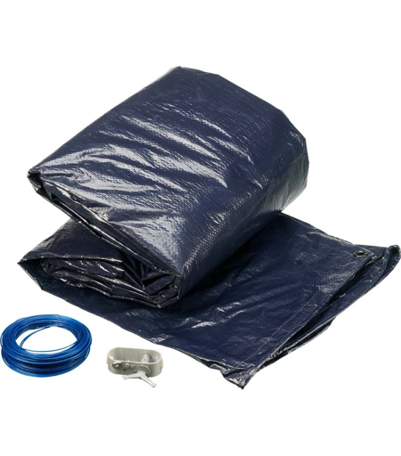 Talvipeite suojaa allasta lehdiltä ja muilta ilmasta tulevilta epäpuhtauksilta koko vuoden. Se myös estää auringonvaloa pääsemästä veteen ja suojaa näin vettä leväkertymiltä. Talvipeite ehkäisee myös veden haihtumista altaasta allaskauden ulkopuolella. Talvipeitteemme (all-season cover) on erittäin kestävää kaksinkertaisesti pinnoitettua 120 g/m2:n materiaalia, jonka yläpuoli on tummansininen ja alapuoli musta. Peitteen mukana toimitetaan metallilanka ja lukko, jotta asiattomat eivät pääse altaaseen. ...