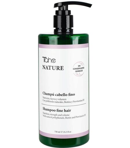TAHE Nature Shampoo Fine Hair on erityisesti muotoiltu shampoo, joka puhdistaa ja tuuheuttaa hienoja ja hienoja hiuksia hellävaraisesti. Sen kevyt ja ravitseva koostumus sisältää luonnollisia ja orgaanisia ainesosia, kuten arganöljyä ja bambuuutetta, jotka auttavat vahvistamaan hiuskuituja ja antavat samalla kosteutta ja ravintoa. Shampoo lisää hiuksiin volyymia ja tuuheutta tehden niistä elinvoimaiset ja käsiteltävät. ...