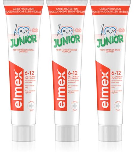 Elmex Junior 6-12 Years, 3x75 ml, Lasten hammastahnat Lapsille, Hammastahna Elmex Junior 6-12 Years puhdistaa lasten hampaat täydellisesti ja pitää ne valkoisina ja terveinä. Ominaisuudet: suojaa hampaita tehokkaasti ...