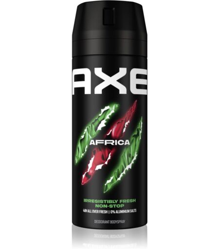 Axe Africa, 150 ml, Deodorantit ja antiperspirantit Miehille, Yhdistä tuoksusi harmoniseksi kokonaisuudeksi. Deodorantista Axe Africa vapautuu samoja aromeja kuin pullossa olevasta tuoksustasi ja yhdessä ne muodostavat täydellisen parin.  Ominaisuudet:  antaa pitkäkestoisen hyvän olon ja puhtauden tunteen suojaa epämiellyttävältä hajulta tukee saman sarjan muiden tuoksujen intensiteettiä  Käyttöohjeet: Toista milloin tahansa päivän aikana. Sopii jokapäiväiseen käyttöön. ...