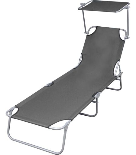 vidaXL Kokoontaitettava aurinkotuoli katoksella teräs harmaa