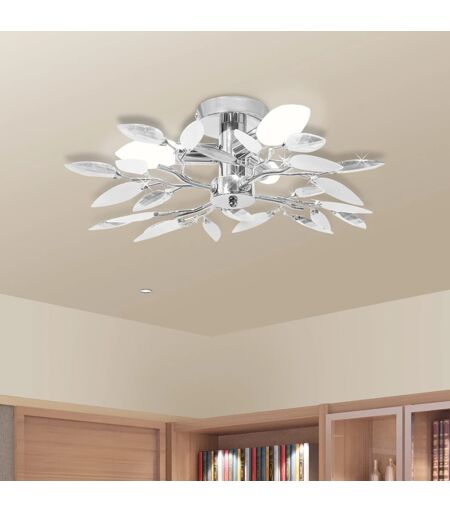 vidaXL Kattovalaisin Valkoisilla ja Läpinäkyvillä Lehtikoristeilla E14 Kanta