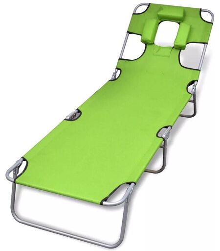 vidaXL Taitettava aurinkotuoli päätuella jauhemaalattu teräs vihreä