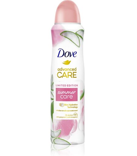 Dove Advanced Care Summer Care, 150 ml, Deodorantit ja Antiperspirantit Naisille, Antiperspirantti Dove Advanced Care imee hikeä optimaalisesti ja neutralisoi hajua. Tuote antaa sinulle joka päivä raikkaan ja puhtaan tunteen. Ominaisuudet: antaa pitkäkestoisen hyvän olon ja puhtauden tunteen suojaa tehokkaasti hikoilulta raikastaa suojaa epämiellyttävältä hajulta Ainesosat: alkoholiton Käyttöohjeet: Levitä kainaloihin puhtaalle ja kuivalle iholle. Anna kuivua täysin ennen pukeutumista. Toista milloin tahansa päivän aikana. ...