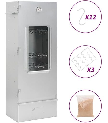 Käytä tätä monitoimista puulastuilla varustettua uunisavustinta juhlien järjestämiseen ja kotoisaan ajanviettoon perheen kesken ulkotiloissa! Kestävä materiaali: Teräs on poikkeuksellisen kova ja vahva materiaali. Se tarjoaa tukevuutta ja vakautta. Teräksen galvanointi tarjoaa paremman suojan ruostetta vastaan ja se on hyödyllinen tuotteille, joita käytetään ulkona.Runsaasti savustustilaa: Ulkosavustin tarjoaa runsaasti tilaa lihan, kalan, makkaroiden ja muiden ruokien savustamiseen. Mukana tulevat S-muotoiset koukut ja ritilät tekevät grillistäsi kätevämmän.Ohjeellinen toiminto: Savustinuuni on varustettu lämpömittarilla kammion lämpötilan tarkistamiseksi. Voit myös pitää silmällä sisällä olevaa ruokaa savustimen lasi-ikkunan ansiosta varmistaaksesi parhaan grillaustuloksen. Varoitus: Älä käytä grilliä suljetussa ja/tai asuintilassa, kuten talossa, teltassa, asuntovaunussa, asuntoautossa, veneessä. Hiilimonoksidi myrkytyskuoleman vaara.Materiaali: Galvanoitu teräs, lasiMitat: 44,5 x 29 x 110 cm (L x S x K)Lasi-ikkunan koko: 19,5 x 41,5 cm (P x L)Sinkkipinnoitettu tulimalja, ritilä ja tuhkalaatikkoKahvallinen laatikkoSoveltuu ulkokäyttöönAsennus vaaditaan: kylläToimitus sisältää:1 x Uunisavustin12 x S-muotoinen koukku3 x Ritilä1 kg puuhaketta SKU:364743 EAN:8720845886226 ...