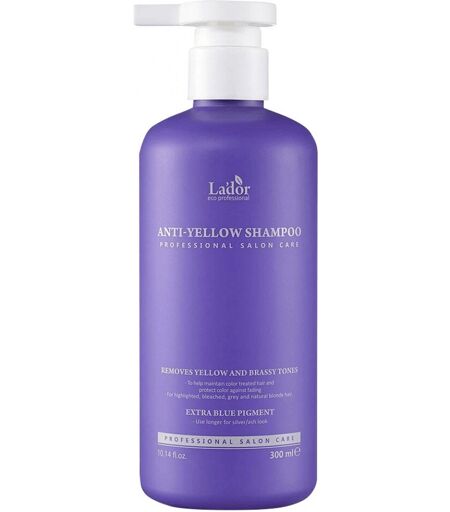 LADOR Anti-Yellow Shampoo neutraloi vaaleiden hiusten epämiellyttävän keltaisen sävyn ja auttaa suojaamaan niitä värjäytymiseltä. ...