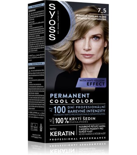 Syoss Permanent Cool Color kestohiusväri viileä pohjasävy sävy 7_5 Natural Ashy Blond 1 kpl