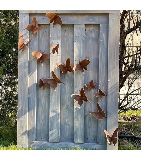 OBOSOE 15 kpl maalaismainen metalliperhonen seinätaide - ulkokoriste puutarhaan ja aitaan Kestävä ja helppo koota Ainutlaatuinen kodin sisustus