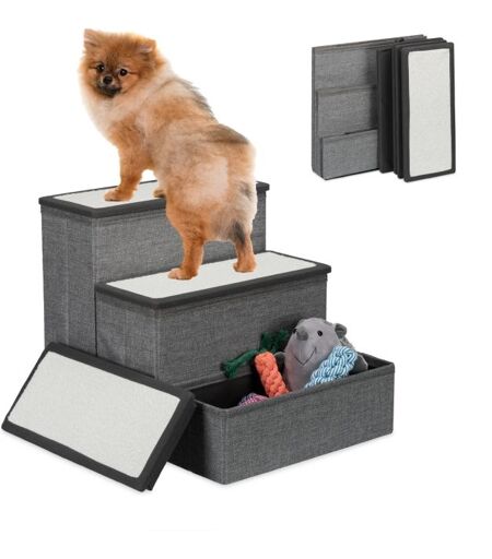 Sohvaportaat koirille ja kissoille Nämä 3-vaiheiset lemmikkitikkaat ovat täydellinen apu nelijalkaiselle ystävällesi sohvalle tai sänkyyn kiipeämiseen. Tämä sekä koiria että kissoja ajatellen suunniteltu portaikko tarjoaa turvallisen ja mukavan tien ylös ja alas, mikä on erityisen hyödyllistä pienille ja vanhemmille eläimille. Tasaisten askelmien ansiosta sohvaportaat ovat hellävaraisia nivelille, mikä vähentää loukkaantumisriskiä ja epämukavuutta. 3-vaiheinen suunnittelu helppoa käyttöä varten Hellävarainen nivelille litteillä askelmilla Tallennustilaa kunkin vaiheen alla Ihanteellinen sekä koirille että kissoille Taitettava säilytystä varten Yksi tämän lemmikkiportaikon ainutlaatuisista ominaisuuksista on käytännöllinen säilytystila jokaisen askelman alla. Täällä voit helposti säilyttää leluja, hihnat tai muita lemmikkitarvikkeita, jolloin kotisi on helppo pitää siistinä. Tämä toiminto tekee portaista paitsi lemmikkisi apuvälineen, myös älykkään säilytysratkaisun. Monipuolinen muotoilu tarkoittaa, että sohvatikkaat sopivat mihin tahansa kotiin, ja kun niitä ei tarvita, ne voidaan helposti taittaa tilan säästämiseksi. Tämä tekee siitä ihanteellisen pieniin koteihin, joissa tilaa on vähän. Lisäksi portaat ovat helppoja kuljettaa, joten ne sopivat täydellisesti matkoille tai ystävien ja perheen luokse. Materiaalit: Kestävä ja kevyt rakenne Mitat: mukautettu vakiosohvan ja sängyn korkeuden mukaan Väri: Neutraali muotoilu, joka sopii kaikkiin sisätiloihin Painokapasiteetti: sopii pienille ja keskikokoisille lemmikeille Huolto: Helppo puhdistaa ja huoltaa Nämä sohvatikkaat koirille ja kissoille ovat toiminnallisuuden ja tyylin yhdistelmän välttämätön lisävaruste kaikille lemmikkieläinten omistajille. Se ei ainoastaan tarjoa turvallista ja kätevää ratkaisua lemmikkisi tarpeisiin, vaan se myös edistää järjestetympää ja tyylikkäämpää kotia. Mitat: Pituus: 41.5cm Leveys: 39.5cm Korkeus: 13.4cm ...