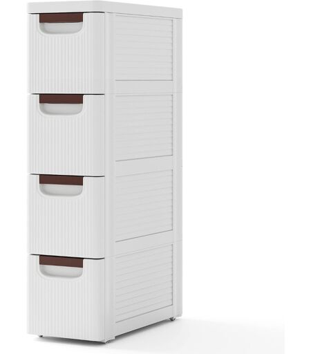 Kapea kylpyhuonekaappi, jossa 4 laatikkoa ja pyörät niche-hyllykylpyhuonekaappi valkoinen
