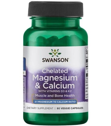 Swanson - Albionin kelaattimagensium ja -kalsium D-3- ja K-2-vitamiineilla