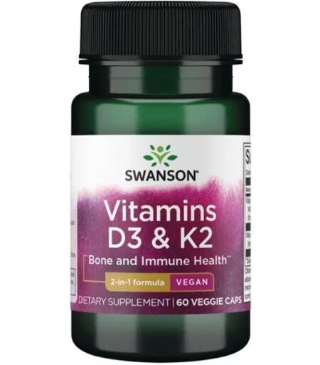 Swanson - Swansonin D3- ja K2-vitamiinit (60 kapselia)