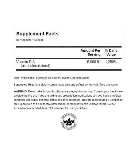 Swanson D3-vitamiini, 5000 IU - 250 pehmeää kapselia