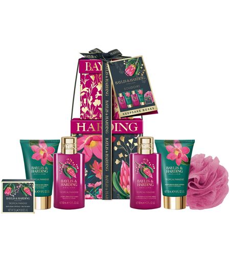 Gift Set Contains: Tropical Paradise Bath & Shower Creme 100ml + Body Wash 100ml + Body Polish 50ml + Hand & Body Lotion 50ml + Bath Soak Crystals 25g + Body Polisher ...