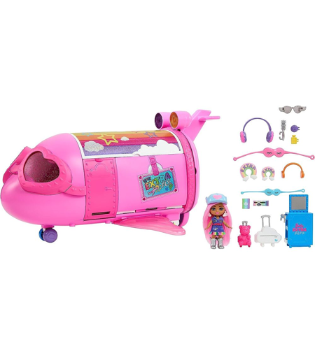 ´Valmistaudu matkustamaan EKSTRA tyylikkäästi Barbie Extra Fly Jetin ja Extra Mini Minis -nukkejen kanssa! Tämä lentokonelelusarja sisältää 15 matkustus- ja muotitarviketta. Pilotin istuimesta värikkääseen ja kimaltavaan sateenkaaren muotoiseen kiitorataan, lentokone hurmaa kauniilla yksityiskohdilla! Se on täydellinen koko sekä 8 cm korkeille Barbie Extra Mini Minis -nukkeille että 14 cm korkeille Barbie Extra Minis -nukkeille! Lelusarjassa on yksi nukke; muita nukkeja ei sisälly.´ ...