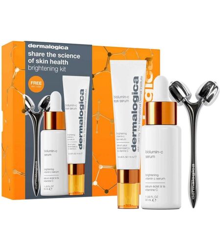 Pakkaus sisältää: Biolumin-C kasvoseerumi 30ml + Biolumin-C silmäseerumi 15ml + Skin Roller. Dermalogican Biolumin-C kasvoseerumi, jossa on C-vitamiinia, toimii ihon luonnollisen puolustuskyvyn kanssa palauttaen ihon säteilyn ja hehkun. Innovatiivinen bioteknologia kiihdyttää erittäin stabiilin C-vitamiinin ja palmitoyylitripeptidi-5:n vaikutuksia vähentäen näkyvästi juonteiden ja ryppyjen syvyyttä. Bioteknologia lisää merkittävästi ihoon imeytyvän C-vitamiinin määrää, mikä on merkittävä etu ...