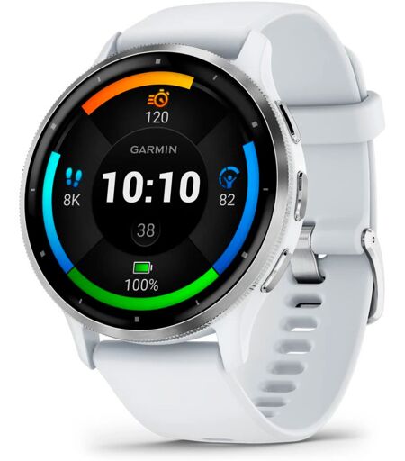 Garmin Venu 3 hopeanvärinen teräskehys ja valkoinen silikonihihna 010-02784-00 - unisex