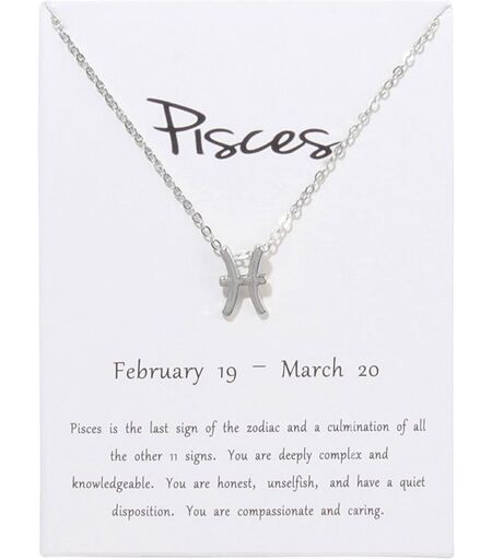Kaunis lahja kaulakoru Zodiac Fish Fisheren. Anna tämän kaulakorun tulla lahjaksi jollekin, joka on kala! Kaulakoru koostuu ohuesta ketjusta, jolla on minimaalinen riipus ja tulee mukaan lahjakortti, jossa kuvataan horoskooppi merkki. Star-merkki Kalastajat, syntymäaika 19.-20.3. & # 8221; Kalat ovat eläinradan viimeinen merkki ja kaikkien muiden 11 merkkien huipentuminen. Olet syvästi monimutkainen ja asiantunteva. Olet rehellinen, epäitsekäs ja sinulla on hiljainen disposition. Olet myötätuntoinen ja huolehtiva & # 8221; Väri: hopea ...