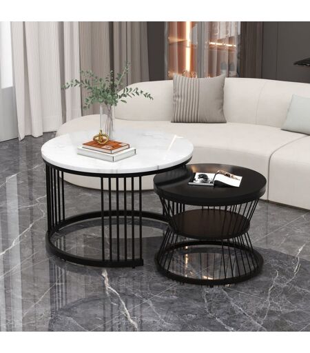 Moderni upotettu sohvapöytä, sohvapöytäsarja, kiiltävä kansi, sohvapöytä, pyöreä upotettu sohvapöytä, 2 kpl, musta runko