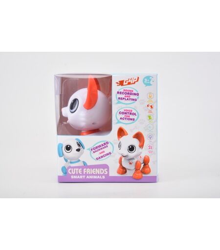 Kissa, jolla on ääniä ja liikettä. Kissa voi toistaa sanomasi. Jos taputat käsiäsi kerran, se menee eteenpäin, kaksi kertaa, se menee taaksepäin ja jos taputat kolme kertaa, se alkaa tanssia! Paristot: 2 AAA (eivät sisälly). Sisältö: 1 interaktiivinen robottikissa. Mitat: noin 10 cm pitkä. Ei alle 3-vuotiaille lapsille. ...