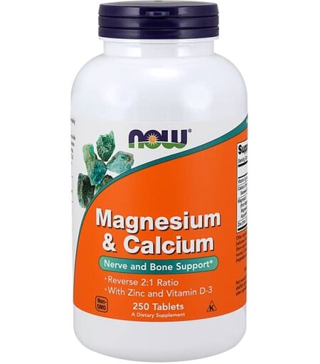 NOW Foods Magnesium & Kalsium sinkillä ja D-vitamiinilla - 250 tablettia