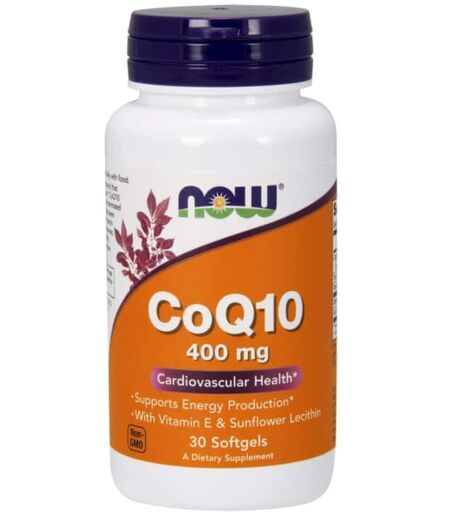 NOW Foods CoQ10 E-vitamiinilla ja auringonkukkalesitiinillä, 400 mg - 30 pehmeää kapselia