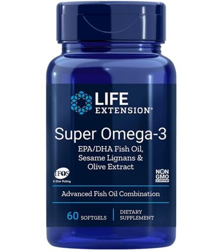 Life Extension Super Omega-3 EPA/DHA seesamilignaaneilla ja oliiviuutteella - 60 kapselia