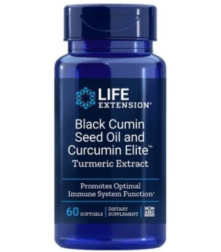 Life Extension Mustakuminaöljy ja Curcumin Elite Kurkumiiniuute - 60 kapselia