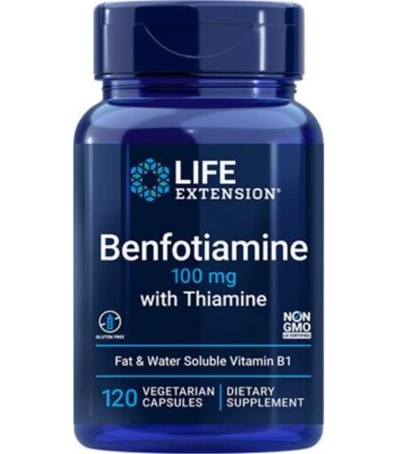 Life Extension Benfotiamiini ja tiamiini, 100 mg - 120 kapselia
