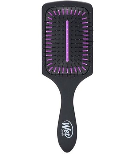 45 % vähemmän hiusten rikkoutumista. 100 % onnellisemmat hiukset. WETBRUSH Paddle Detangler Flat Brush ei ainoastaan irrota hiustupet hellävaraisesti, vaan auttaa myös levittämään hoitoaineen tai naamion tasaisesti. Harja on erittäin helppo pestä ja kuivata - ylimääräinen vesi valuu pois harjan takaosassa olevien reikien kautta. Erikoislaatuisella IntelliFlex-teknologialla valmistetut erittäin pehmeät harjakset poistavat kivuttomasti nutturat ja ehkäisevät samalla hiusten katkeilua ja vähentäv ...