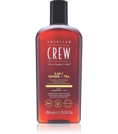 American Crew 3 in 1 Ginger + Tea shampoo, hoitoaine ja suihkugeeli 3-in-1 miehille 450 ml