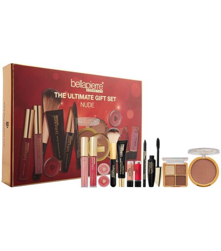 Lahjasetti sisältää: 1x Powder Dome Brush + 1x HD Smoothing Primer 30ml + 1x Compact Bronzer 8g + 1x 4 Color Eyeshadow Palette Nude Smokey + 1x Gel Eyeliner Black + 1x Volume Mascara Black 9ml + 1x Super Gloss Ruby 3.6ml + 1x Super Gloss Velvet Rose 3.6ml + 1x Matte Lipstick Ruby 3.5g + 1x Matte Lipstick Velvet Rose 3.5g + 1x Tinted Lip Balm Ruby 7g + 1x Tinted Lip Balm Velvet Rose 7g. ...