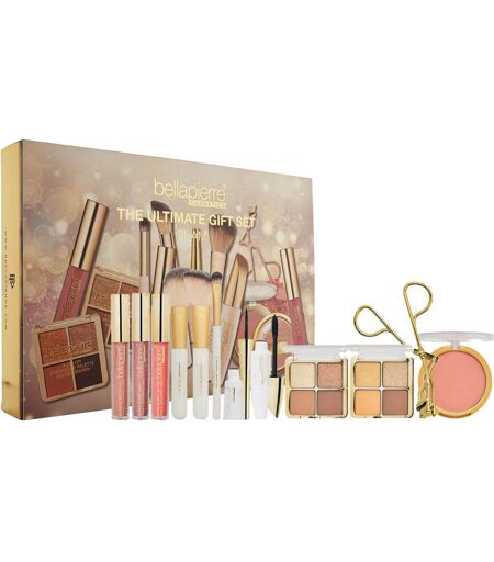 Lahjasetti sisältää: 1x Puuterisivellin + 1x poskipunasivellin + 1x luomiväriharja + 1x ripsien kihartimen + 1x Volumizing Mascara Black 9ml + 1x nestemäinen eyeliner + 1x puristettu poskipuna Desert Rose 8g + 1x Super Gloss Merlot 3.6ml + Super Gloss Everyday 3.6ml + 1x Super Gloss Very Berry 3.6ml + 1x 4-värinen luomiväripaletti Nude 4.8g + 1x 4-värinen luomiväripaletti Golden Brown 4.8g. ...