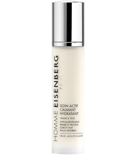 EISENBERG Homme Essential Soothing Moisturizing Cream kosteuttaa, suojaa, rauhoittaa herkkää ihoa ja vähentää punoitusta. Vadelma-varsiuutteen antioksidanttisten, ärsytystä ehkäisevien ja DNA:ta suojaavien ominaisuuksien ansiosta se lievittää parranajon, ilmastonmuutoksen, saasteiden tai liikunnan kuumuuden aiheuttamia ihovaurioita. Kaavan sisältämä Trio-Molecular®-kompleksi vaikuttaa ikääntymistä ehkäisevästi ja vähentää merkittävästi ihon karheutta. Voidaan käyttää sekä kasvoille että silmänym ...