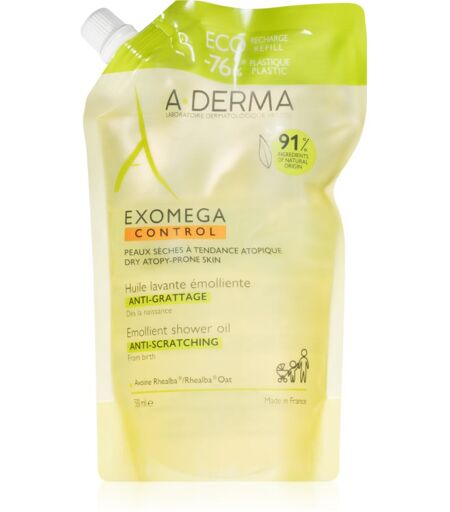A-Derma Exomega Control Emollient Shower Oil pehmentävä suihkuöljy täyttöpakkaus 500 ml