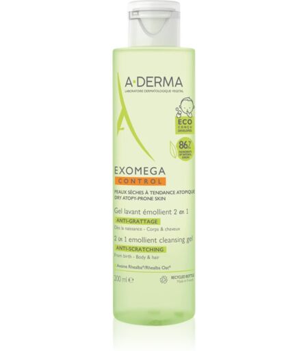 A-Derma Exomega Control 2 in 1 emollient cleansing gel suihkugeeli kuivalle ja atooppiselle iholle 200 ml