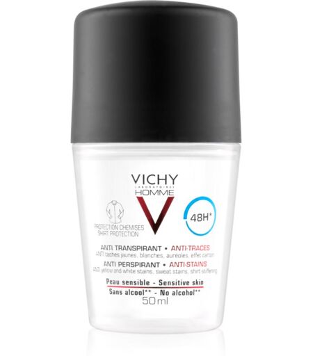 Vichy Homme Deodorant, 50 ml, Antiperspirantit Miehille, Antiperspirantti Vichy Homme imee hikeä optimaalisesti ja neutralisoi hajua. Tuote antaa sinulle joka päivä raikkaan ja puhtaan tunteen.  Ominaisuudet:  suojaa tehokkaasti hikoilulta suojaa epämiellyttävältä hajulta ei jätä tahroja vaatteisiin  Ainesosat:  alkoholiton  Käyttöohjeet: Levitä kainaloihin puhtaalle ja kuivalle iholle. ...