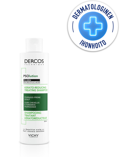 Dercos PSOlution-shampoo, testattu psoriasikseen taipuvaiselle hiuspohjalle. Rauhoittaa hiuspohjaa välittömästi ja vähentää näkyvää hilsettä 1 viikon käytön jälkeen*. ...