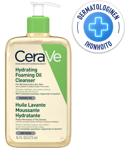 Kosteuttava ja vaahtoava puhdistusöljy normaalille, kuivalle ja erittäin kuivalle iholle. Kasvoille ja vartalolle. Puhdistaa, kosteuttaa ja rauhoittaa ihoa häiritsemättä ihon suojamuuria. Sisältää 3 tärkeää keramidia sekä skvalaaniöljyä ja triglyseridejä. Hajusteeton. Hypoallergeeninen. ...