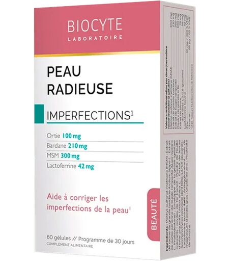 BIOCYTE Radiant Skin on ravintolisä, joka on erityisesti suunniteltu epäpuhtaalle ja akneen taipuvaiselle iholle. Tuloksena on säteilevä iho, sileämpi rakenne ja tasapainoinen öljyntuotanto. Valmisteen sisältämä laktoferriini tukee immuunijärjestelmää ja auttaa suojaamaan kehoa bakteereilta, viruksilta, sieniltä ja muilta mahdollisesti haitallisilta mikrobeilta. Laktoferriini tukee elimistömme ruoansulatusjärjestelmää, jonka toiminta puolestaan tukee ravintoaineiden imeytymistä. Laktoferriinillä ...
