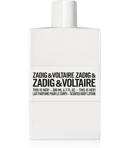 ZADIG&VOLTAIRE THIS IS HER!, 200 ml, Vartalohoito Naisille, Nauti ylellisestä tuoksusta aamu- ja iltarituaaliesi aikana. Vartalonhoitotuote ZADIG&VOLTAIRE THIS IS HER! rauhoittaa aistisi ja hellii ihoasi lempituoksullasi.  Ominaisuudet:  jättää ihon samettisen pehmeän tuntuiseksi kosteuttaa ja pehmentää ihoa pitkäkestoisesti levittyy hyvin, imeytyy helposti tukee saman sarjan muiden tuoksujen intensiteettiä sopii mainiosti lahjaksi yhdessä tuoksun kanssa ...