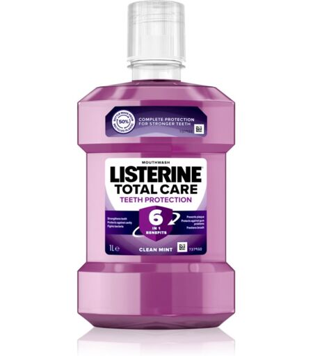 Listerine Total Care Teeth Protection, 1000 ml, Suuvedet ja Suusuihkeet unisex, Suuvesi Listerine Total Care Clean Mint ei ainoastaan raikasta hengitystä, vaan myös suojaa plakilta ja pitää ikenet ja hampaat terveinä. Ominaisuudet: taistelee karieksen muodostumista vastaan suojaa plakilta tappaa bakteereja vahvistaa kiillettä pitää ikenet terveinä antaa raikkaan hengityksen Käyttöohjeet: Huuhtele suu hampaidenpesun jälkeen suuvedellä pakkauksessa määritellyn ajan ja sylkäise sitten pois. ...