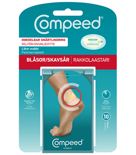 COMPEED Medium -rakkolaastari imee ylimääräisen kosteuden ja muodostaa suojaavan pehmusteen sekä lievittää välittömästi kipua ja luo optimaaliset olosuhteet jalkarakkojen paranemiselle. Saatavilla useassa eri pakkauskoossa. ...